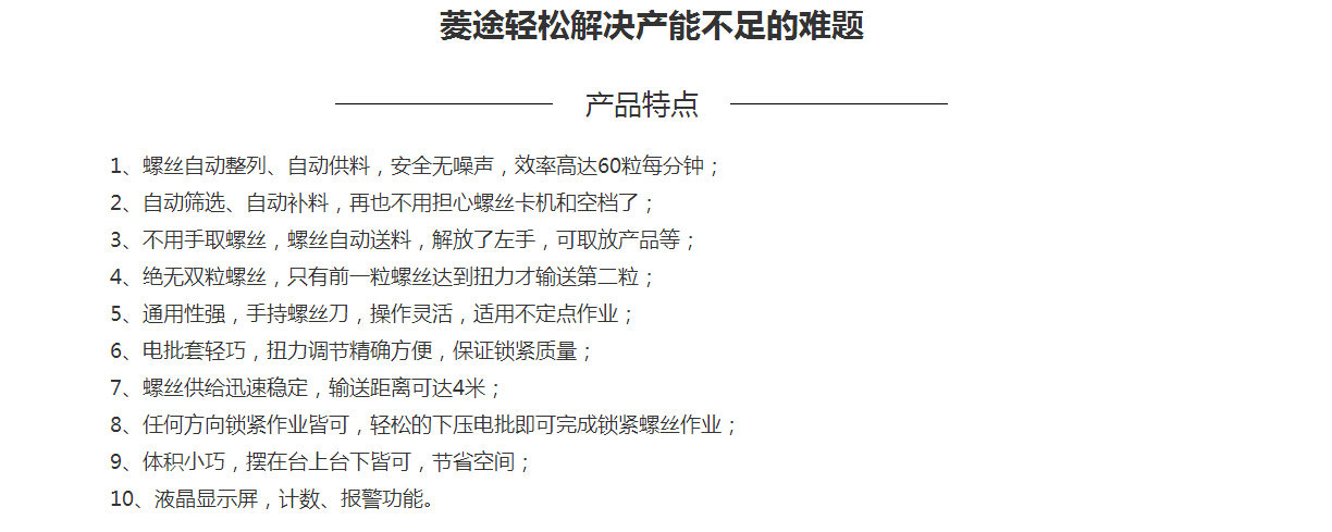 汽車行業(yè):車載遙控器、汽車掛檔手柄、車載DVD等產(chǎn)品適用于該設(shè)備鎖螺絲;