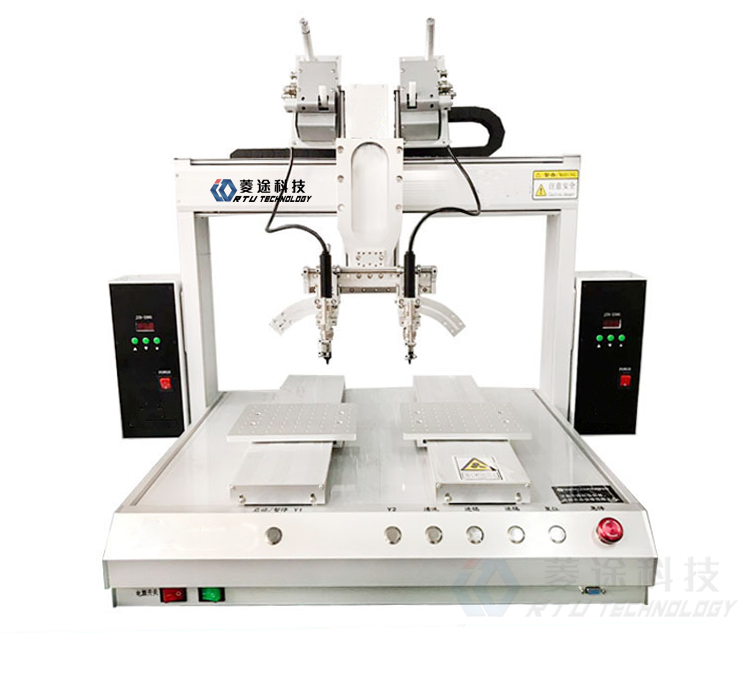 雙頭自動焊錫機是根據客戶的實際需要所推出的一款單頭的升級版產品,可以雙頭同時焊接,從而將工作效率提高一倍,以滿足客戶提高效率節約生產空間的需求。